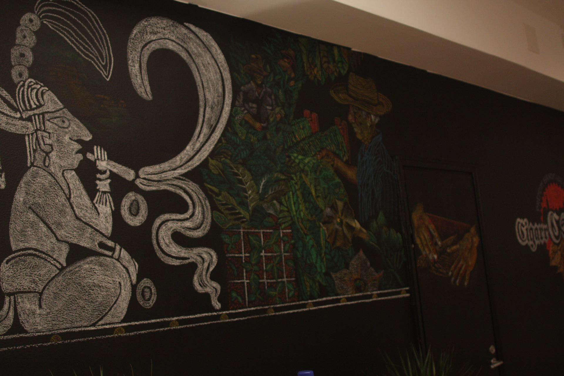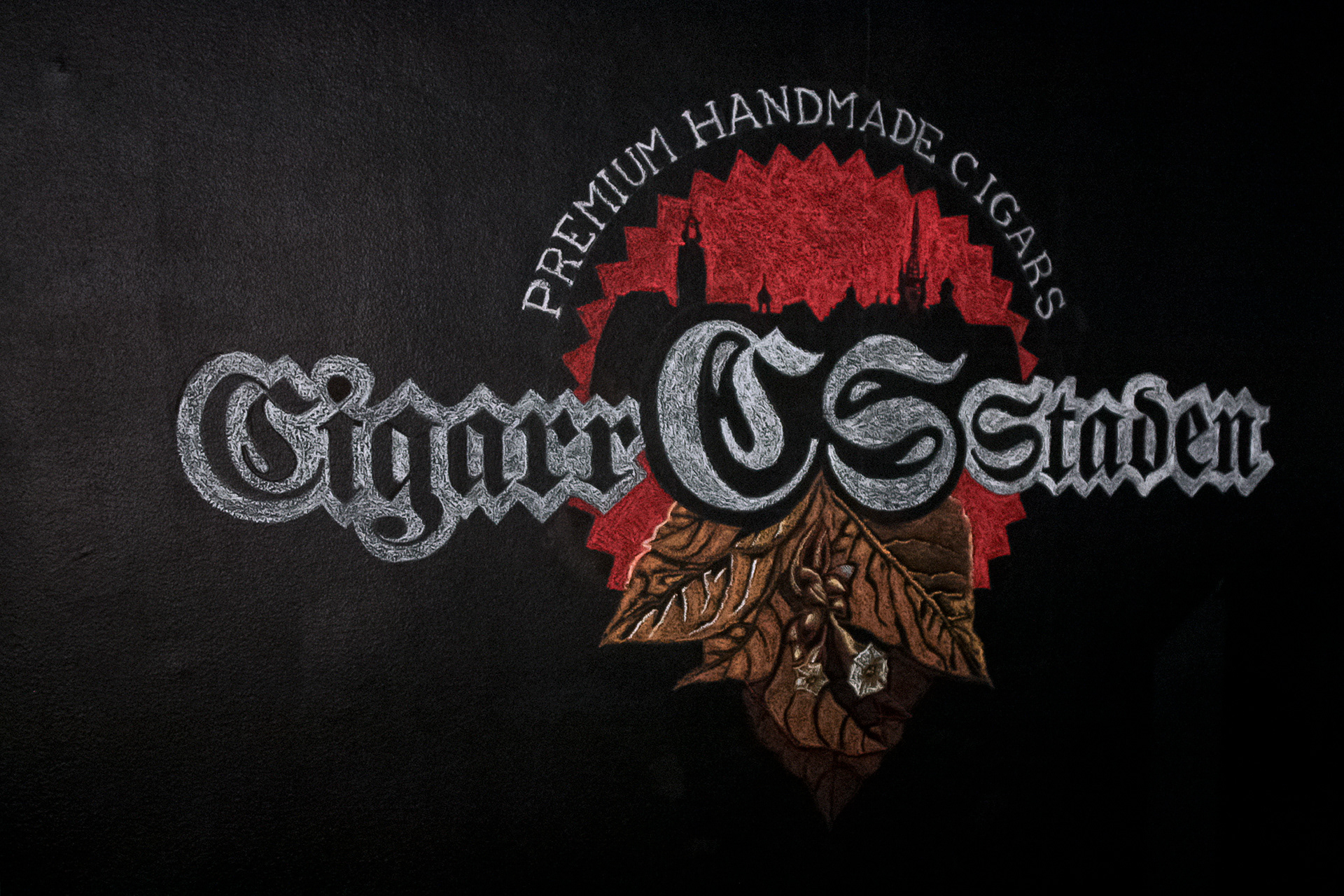 I challenge myself to create a brand concept in 7 days and put it on store in two days, finish on time before the opening event and leave satisfied clients: my entrepreneur friends from Cigarr Staden Boutique Artwork for Tabaquería in Stockholm. The mural was made with oil pastels on blackboard paint.